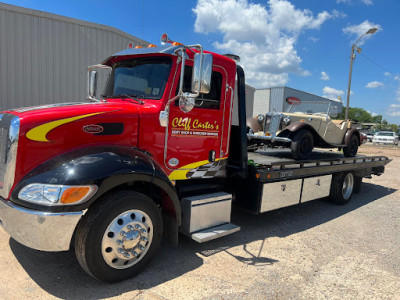 Great Service! Cliff Carter runs a full-service auto body shop with tow truck service. We were strangers to the area, stranded and did not know where to get help. We are so grateful we found Cliff Carter. We were on vacation, stopped for lunch, and accidently ran our battery down. He went out of his way to get our car back on the road so we could enjoy our vacation. Thank you!