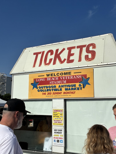 This is a very large Antique Flea market. The weather is always nice but bring a hat and cart. Lots of Smalls and Jewelry. Also some furniture pieces but Rose Bowl Swap meet has more. The nick knacks are more reasonable here then the Rose Bowl. Dealers are nicer here then Rose Bowl. Also admission is half of Rose Bowl. There is lots of parking. Good Bathrooms. -No Food at this time. Parking is crazy.