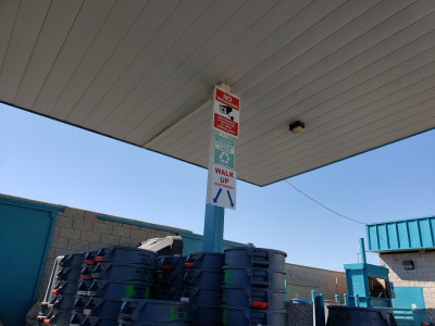 It has a drive-thru iching unload your recycles and you park in the two spots available where you have to get off and you put your recycles in the bins. They have decent staff but they are limited with employees but they are working good. Be patient, especially when it's hot. Be careful when you exit the area because there is a car wash right next to it.
