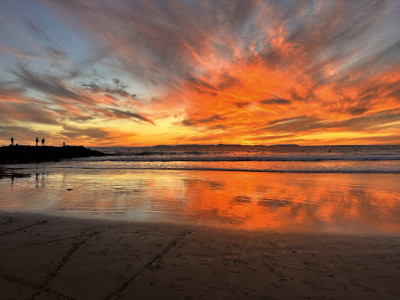 Beautiful and relaxing scenery!! Great place to chill, exercise, meditate, swim, surf, fish, and have fun!! It can get packed and difficult to find parking some days… just have to be patient… get there early if you want to enjoy the sunrise… sunsets are also breathtaking when you catch them!! You also may get a free dolphin show I just love the beach!!