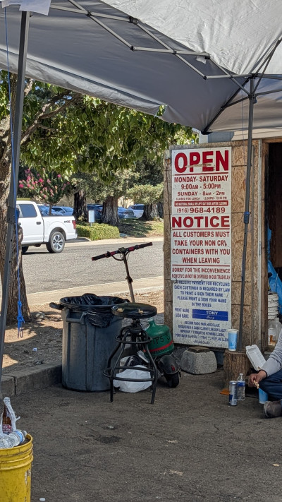 Hrerado is an under-15-year-old guy working here. They don't respect the California law that if it's less than 50 cans or bottles, they must pay 5 cents per item. He said, "Call my boss. Five guys are working here, and no one speaks English. Try to separate heavy cans and keep them in a different category. I don't want to pay for 20 cans, so I'll try to keep them." CRV department or the boss please tell them whats californias law.