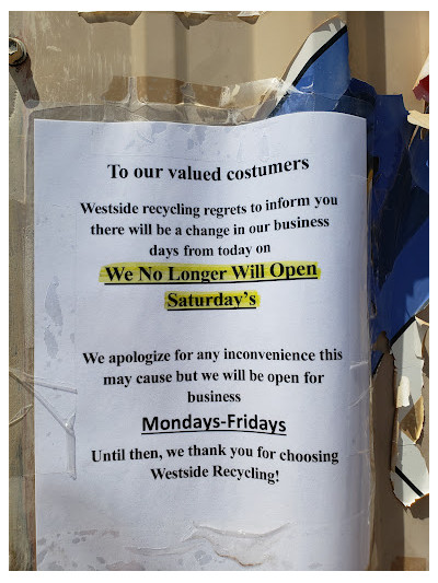 They are truly a blessing in the recycling business because they are fair and righteous people. They know the hard work we put into gathering scrap metal, preparing it, and also the distance we travel when we sell it. They've ALWAYS been fair with prices and honest with weighing. Any recyclers out there, there is a little piece of heaven at the Westside...