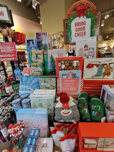 The space is a little tight especially with many people (it's the holiday season). They have a really incredible array of greeting cards and boxed cards, and gifting supplies like wraps and ribbons, which is why I went there. They also have a really nice assortment of fun gifts. I didn't realize the holiday card box sets were buy one get one, but the cashier told me and let me go pick out another box. I really appreciate that. Worth a stop if you like to make an experience out of gift giving.