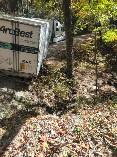 Crazy .. with all the ice while parking at home we slowly went over an embankment. Damon was here in 30 minutes pulling us out of the trees.