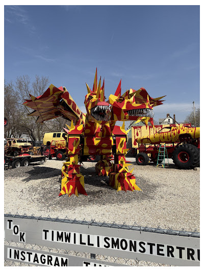 Took a client to see the Monster truck art today and had a marvelous time. Tim came over to talk to us and showed us pieces he was working on in his workshop as well as how the dragon moved and "came to life". He was fantastic to talk to and we had a great time looking at all his work. Highly recommend if you are in the area to stop and visit.