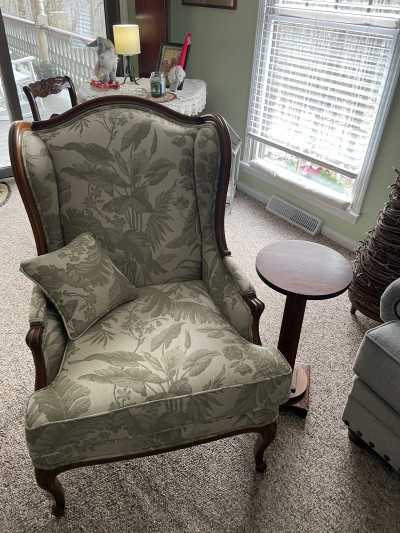Bought a roll of old fabric, actually 10(+) yards. It was perfect for an old Baker winged back chair, I had previously bought.