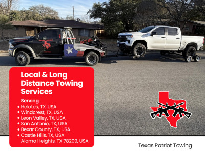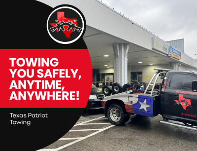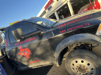 Texas Patriot Towing . We broke down about 20 minutes north of San Antonio on a Saturday afternoon. In the middle of an unfamiliar area. Called his company was there in 30 minutes and had my vehicle towed to my local dealership in less than 30 minutes. Very professional highly recommended.