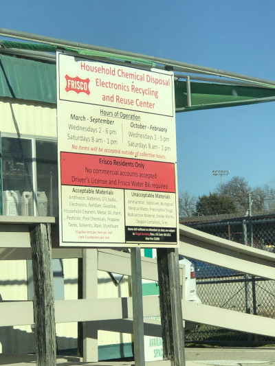 Primarily only open during normal weekday business hours when people would be working and only open for a few hours on Saturday. This wouldn't be such a problem if Frisco accepted bulk recycling from the curb in an easy fashion like many other cities do.Oct 26, 2019 -