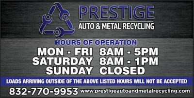 Prestige Auto & Metal Recycling are located in Houston, and the exact address is listed above on this page. Our regular business hours are 8am - 5pm, but we can arrange appointments outside normal hours upon request. For your convenience, you can also use the Get Directions feature or request on-site service.