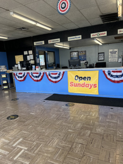 Fast and Convenient for a Sunday appt - Plus had the NFL Playoff Games as well Less than 2 hours for 4 new tires and alignment