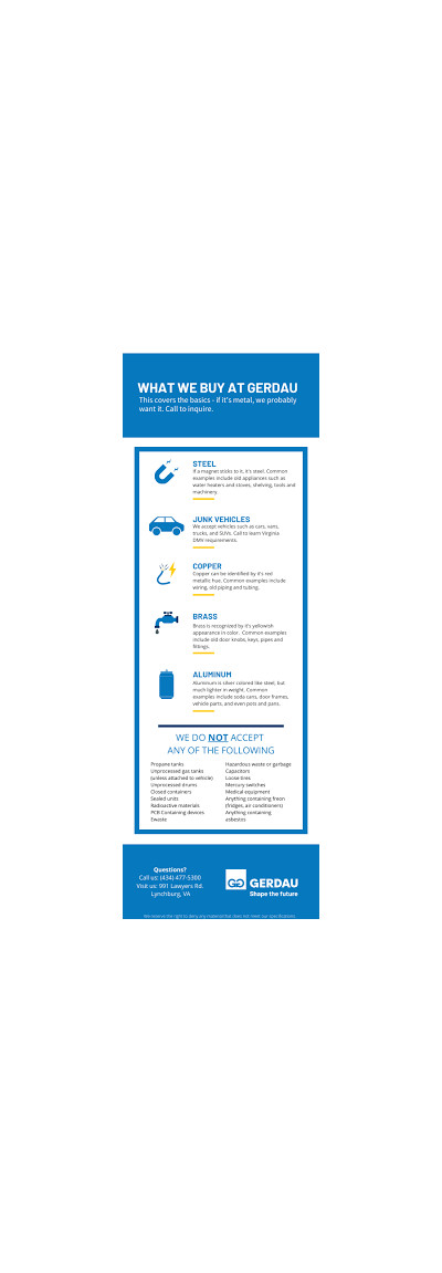 Gerdau Metals Recycling - Lynchburg are located in Lynchburg, and the exact address is listed above on this page. Our regular business hours are 7:30:00 AM - 4:00 PM, but we can arrange appointments outside normal hours upon request. For your convenience, you can also use the Get Directions feature or request on-site service.